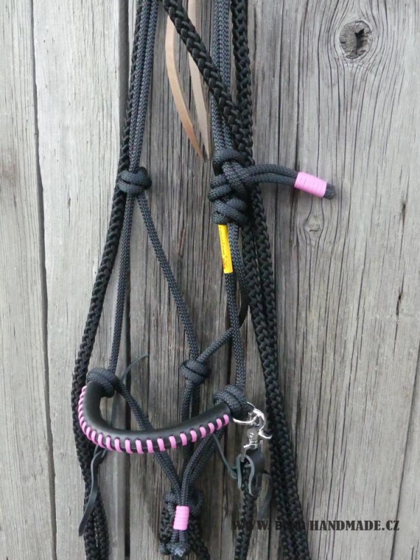 Ohlávka je vyrobena z kvalitního jachtového lana, které se nevytahuje. Nánosník je zpevněn koženým opletem pro snažší manipulaci s koníkem.