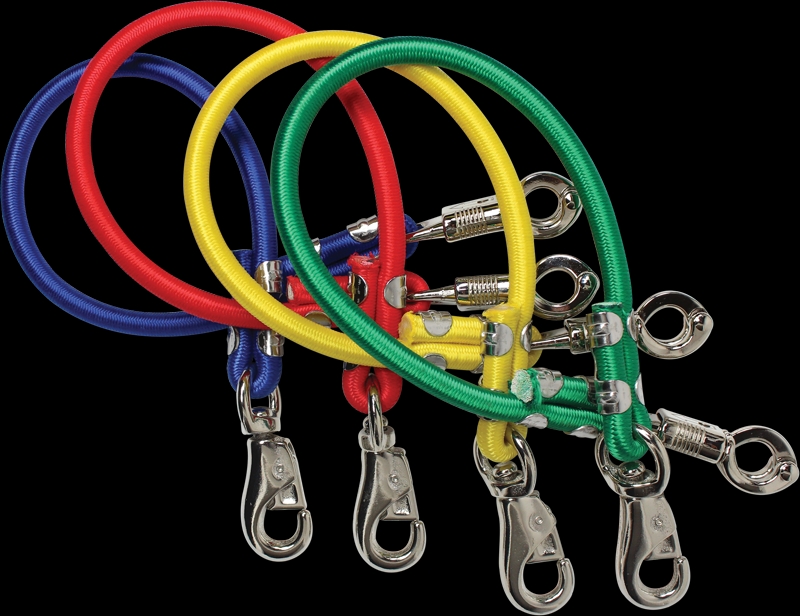 Vazák z gumového lana, niklové karabiny. Délka cca 70 cm.