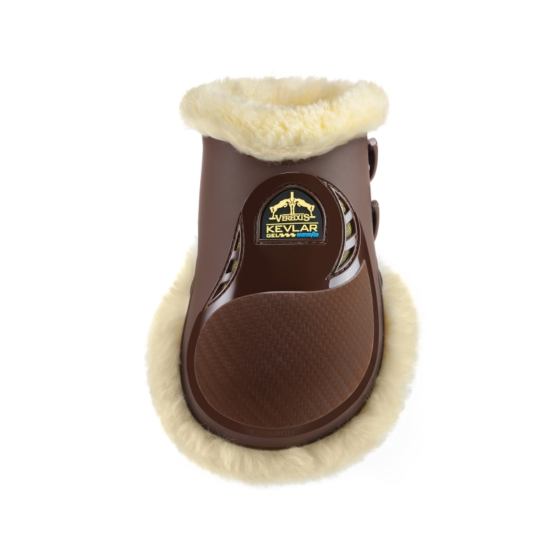 Zadní chrániče od prémiové značky Veredus s kevlarovou vrstvou. Kevlar je lehký materiál, který je pětkrát pevnější než ocel. Chrániče kromě kevlaru obsahují i speciální nitrexgel, který výborně absorbuje nárazy. Díky spojení těchto dvou materiálů bude noha vašeho koně perfektně chráněná. Vnitřní strana chráničů je vyměkčená umělým beránkem Save The Sheep, takže chrániče jsou ideální i pro citlivé koně.