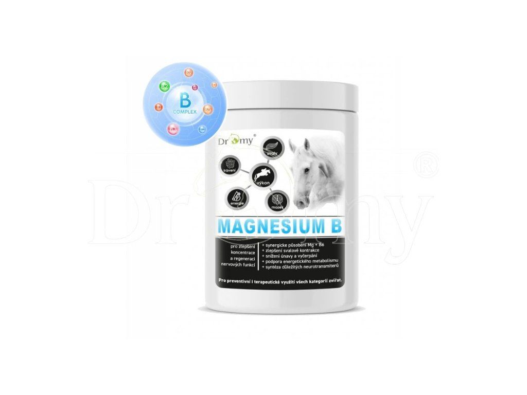 Magnesium B je skvělý produkt pro koně všech kategorií s deficitem hořčíku. Je zaměřen na podporu energetického metabolismu, omezení stresových reakcí, snížení únavy a vyčerpání. Sportovní koně, koně s PSSM se sklony ke křečím, ztuhlosti a výskytem svalového třesu a záškubů, se sníženou chutí k jídlu, ztrátou kondice, pro podporu zadního střeva, starší koně se sníženou schopností vstřebávání živin.