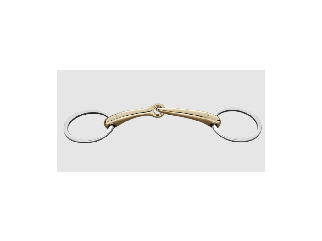 - anatomicky správně sedí mezi jazykem a patrovým obloukem, umožňuje účinné ovládání otěžemi