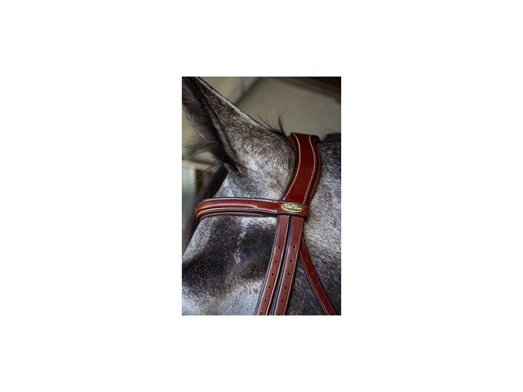 - luxusní uzdečka s rozšířeným anglickým kombinovaným nánosníkem a rozšířenou čelenkou