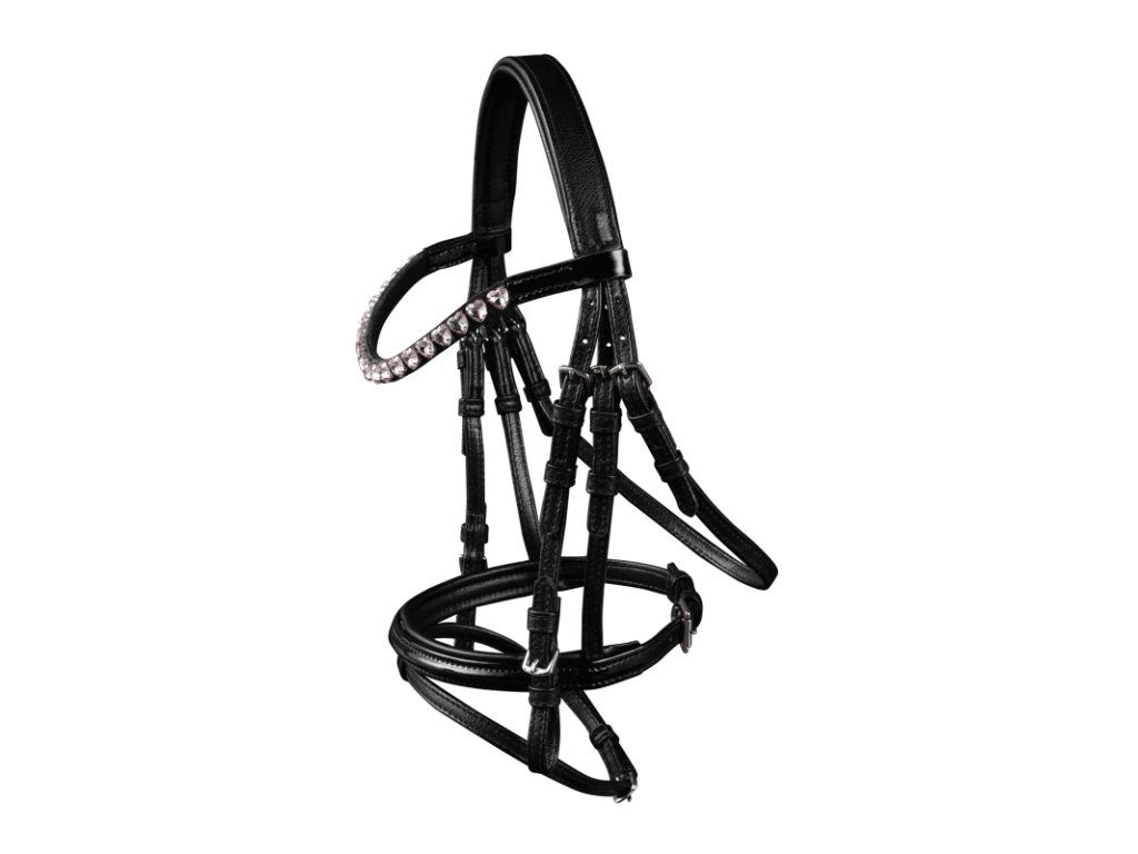 - uzdečka s anglickým kombinovaným nánosníkem a čelenkou zdobenou růžovými kamínky ve tvaru srdíčekDoplňkové parametry